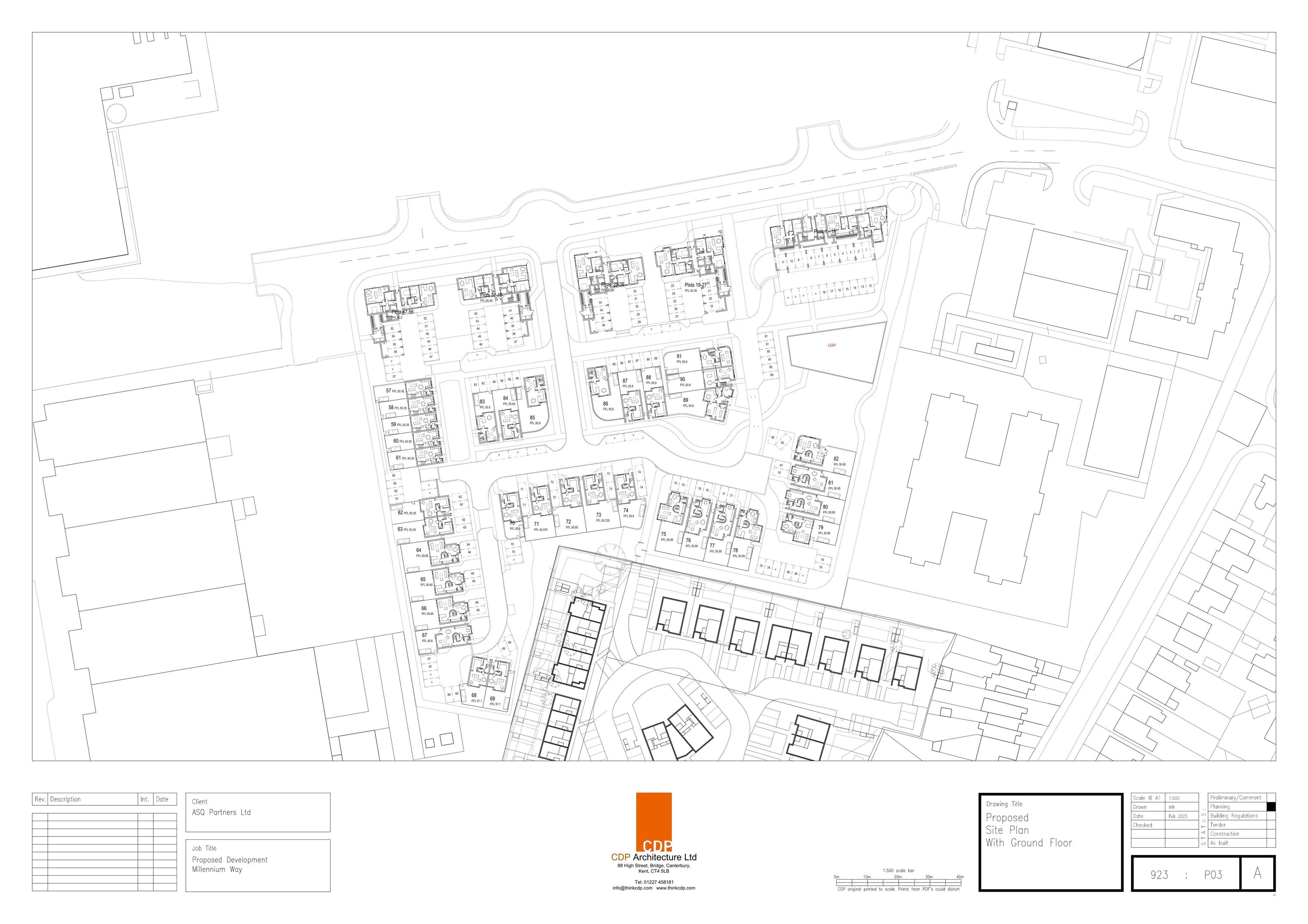 PLOTS 37-56 FRONT ELEVATION AND GROUND FLOOR PLAN