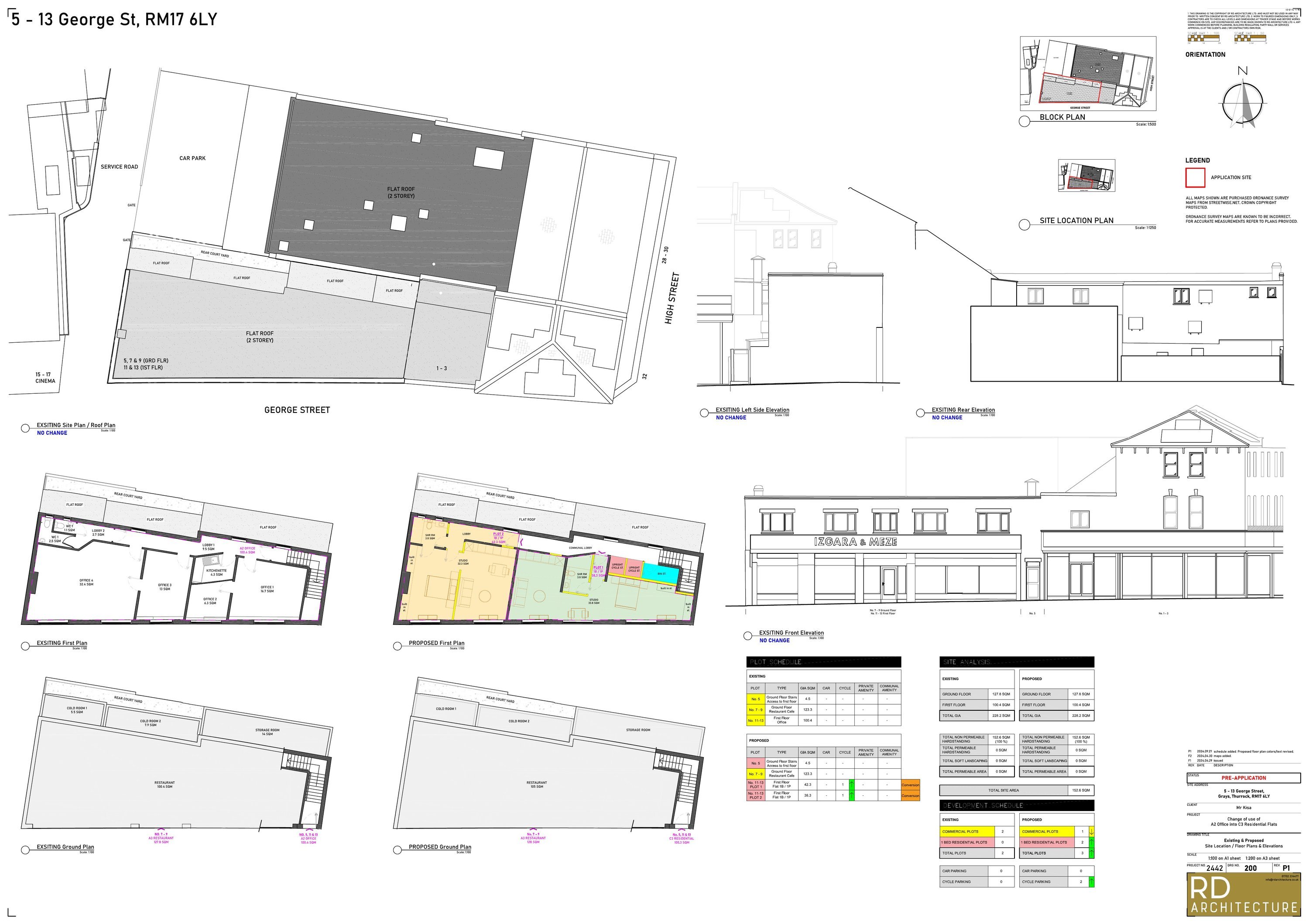Change of use of existing first floor office into 2x C3 Flats with cycle and bin stores.