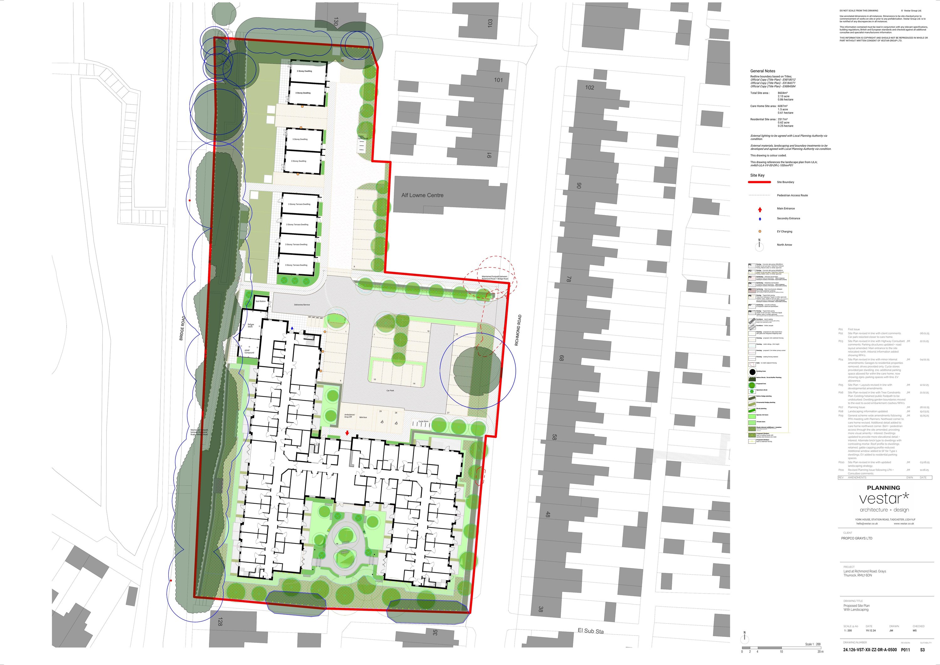 Redevelopment to provide an 86-bed care home (C2) and eight houses (C3) with access and landscaping.