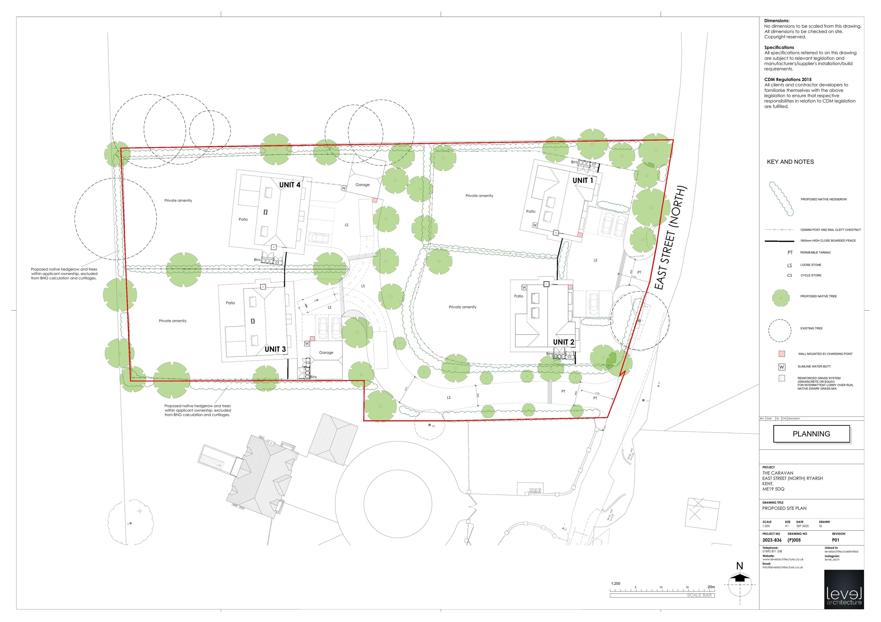 Proposed demolition of existing residential caravan, and site clearance. Erection of four dwellings with ancillary development and landscape enhancements
