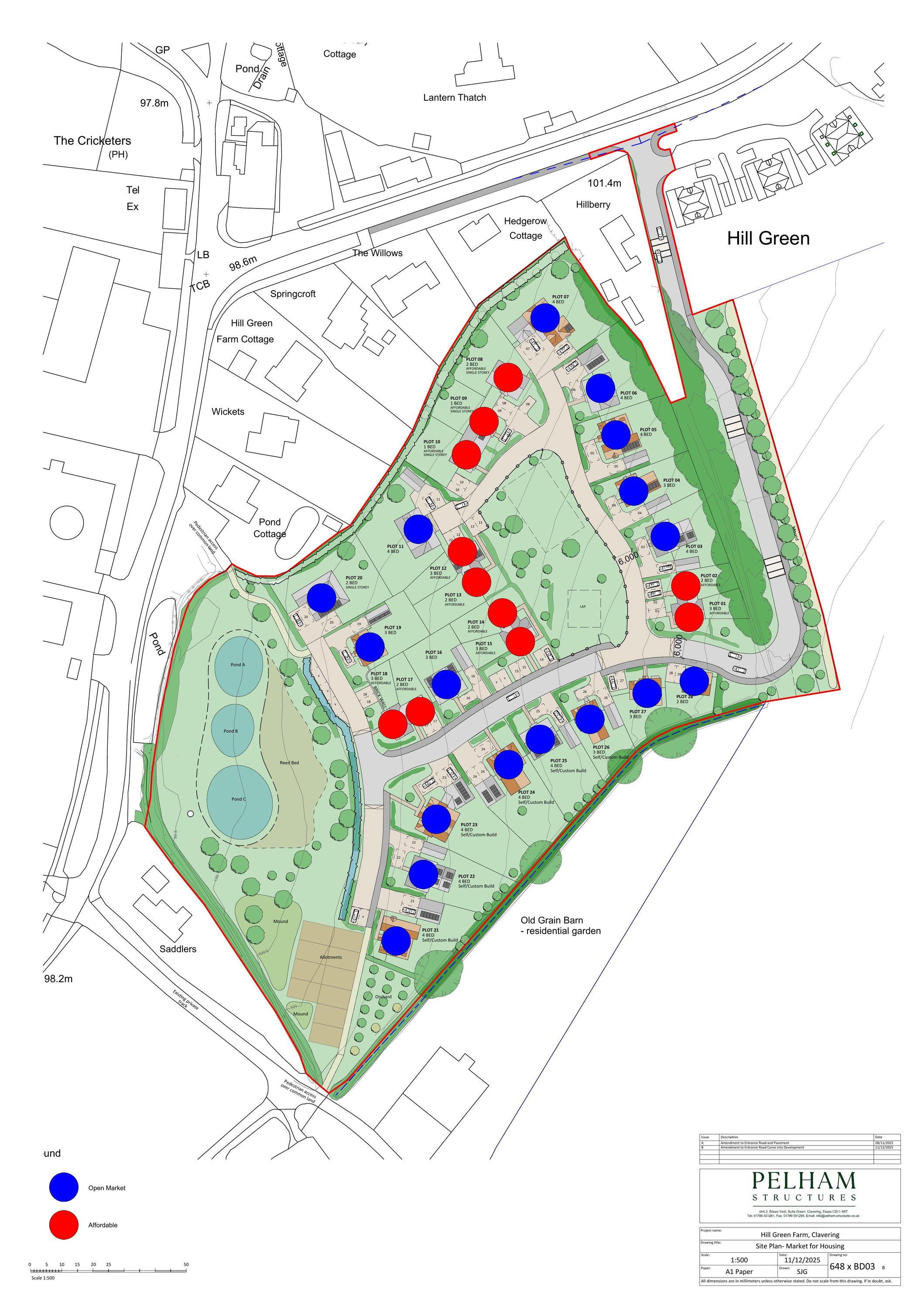 Erection of 28 new dwellings, including 11 affordable and six self/custom build plots.