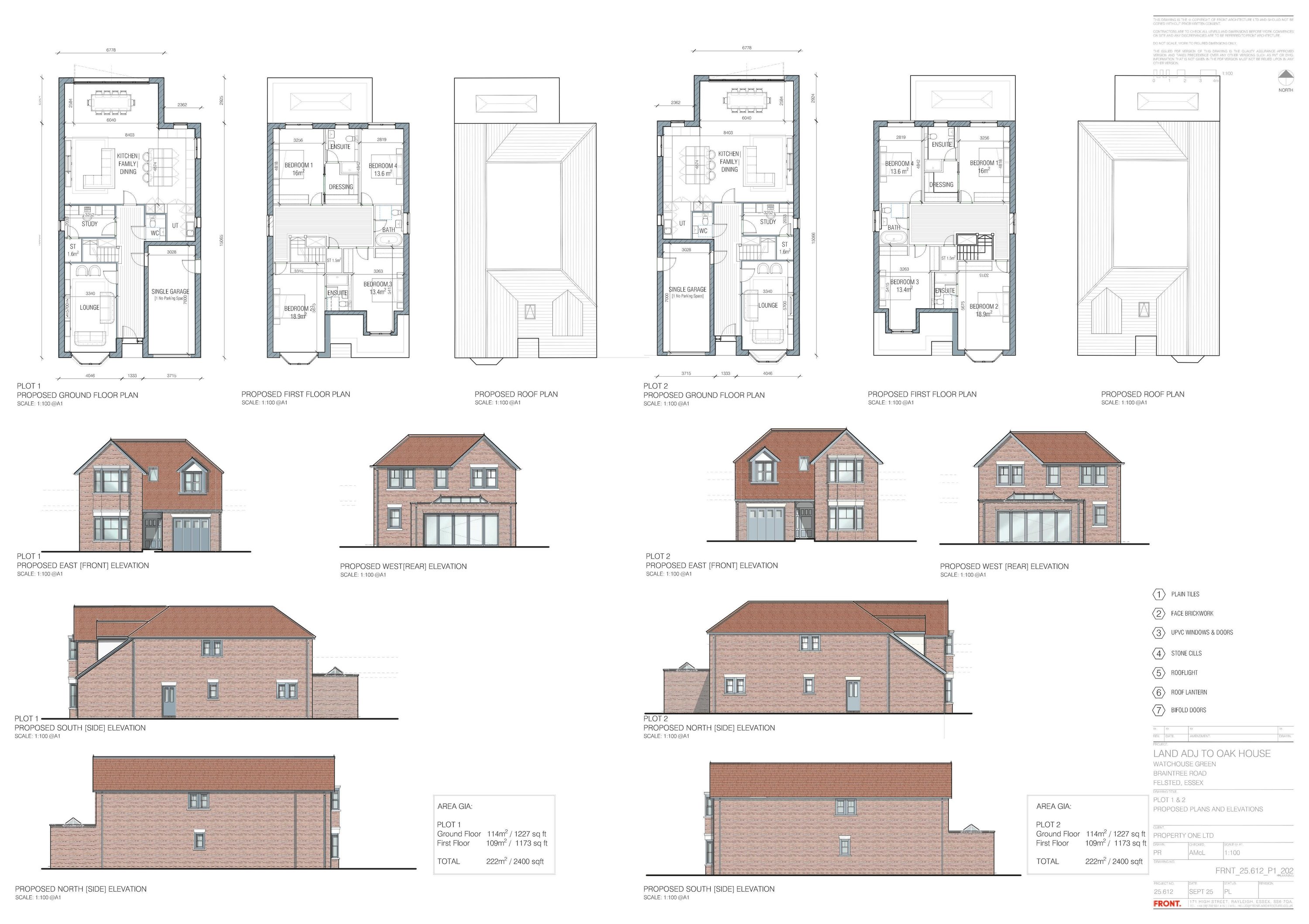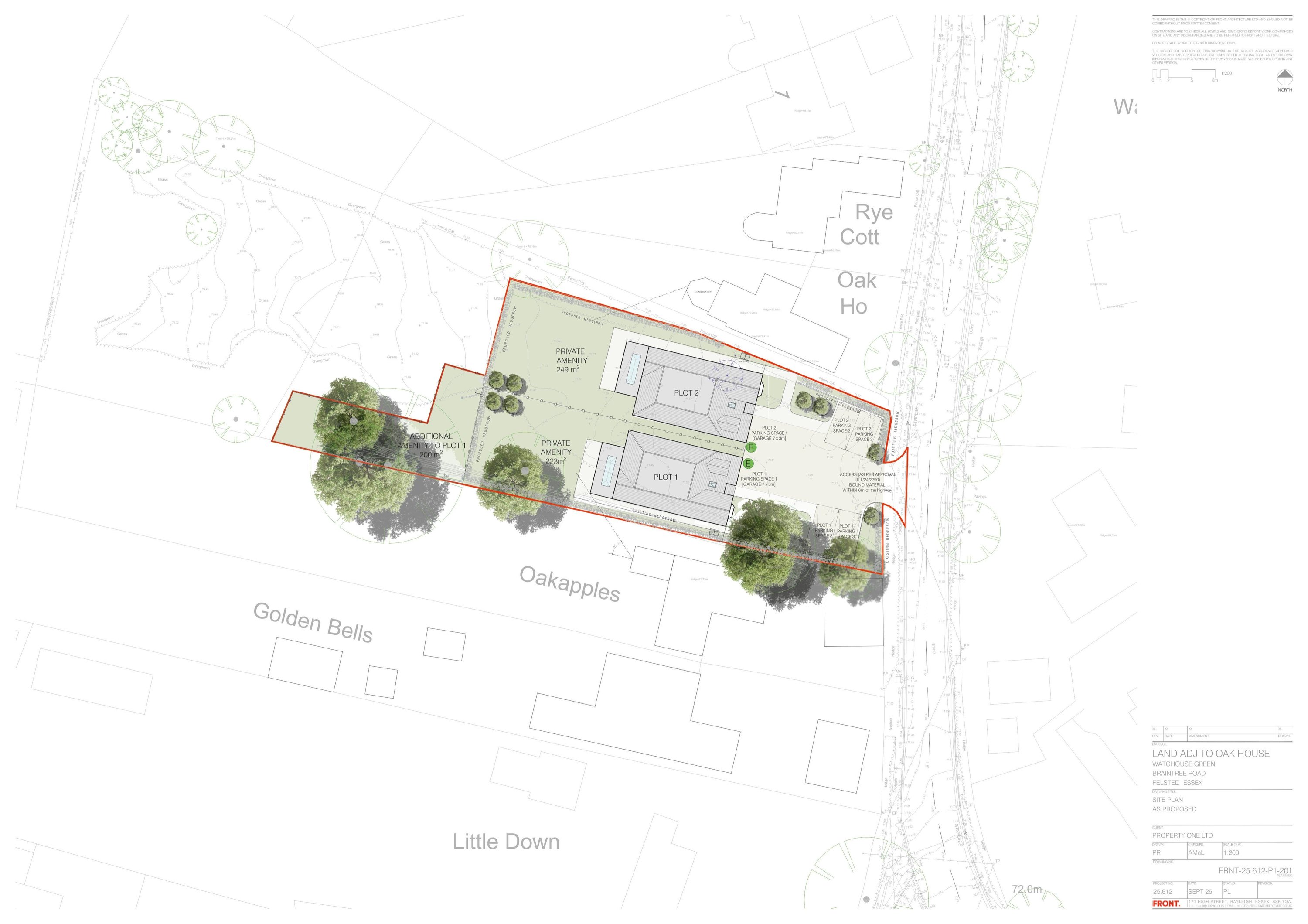 Details following outline application UTT/24/2790/OP for the construction of 2 no. detached dwellings - details of layout, scale, landscaping and appearance