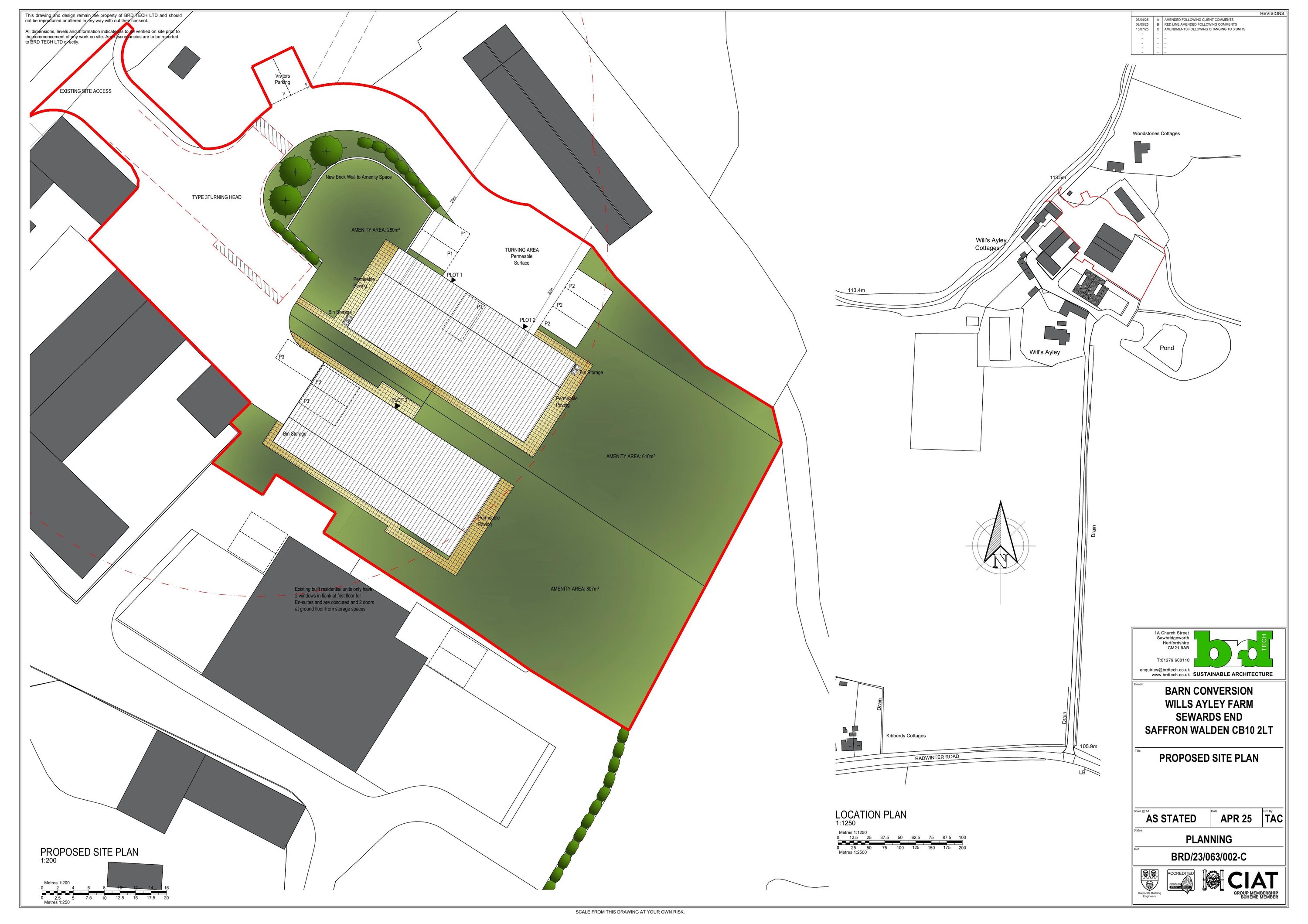 Convert barn to three self-contained dwellings with parking and landscaping.