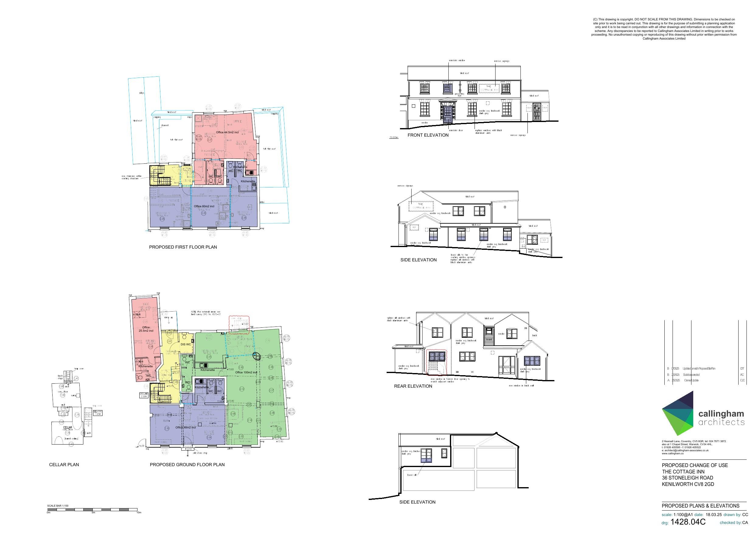 Change of use from public house (Sui Generis) to offices (Class E), with window and render works.