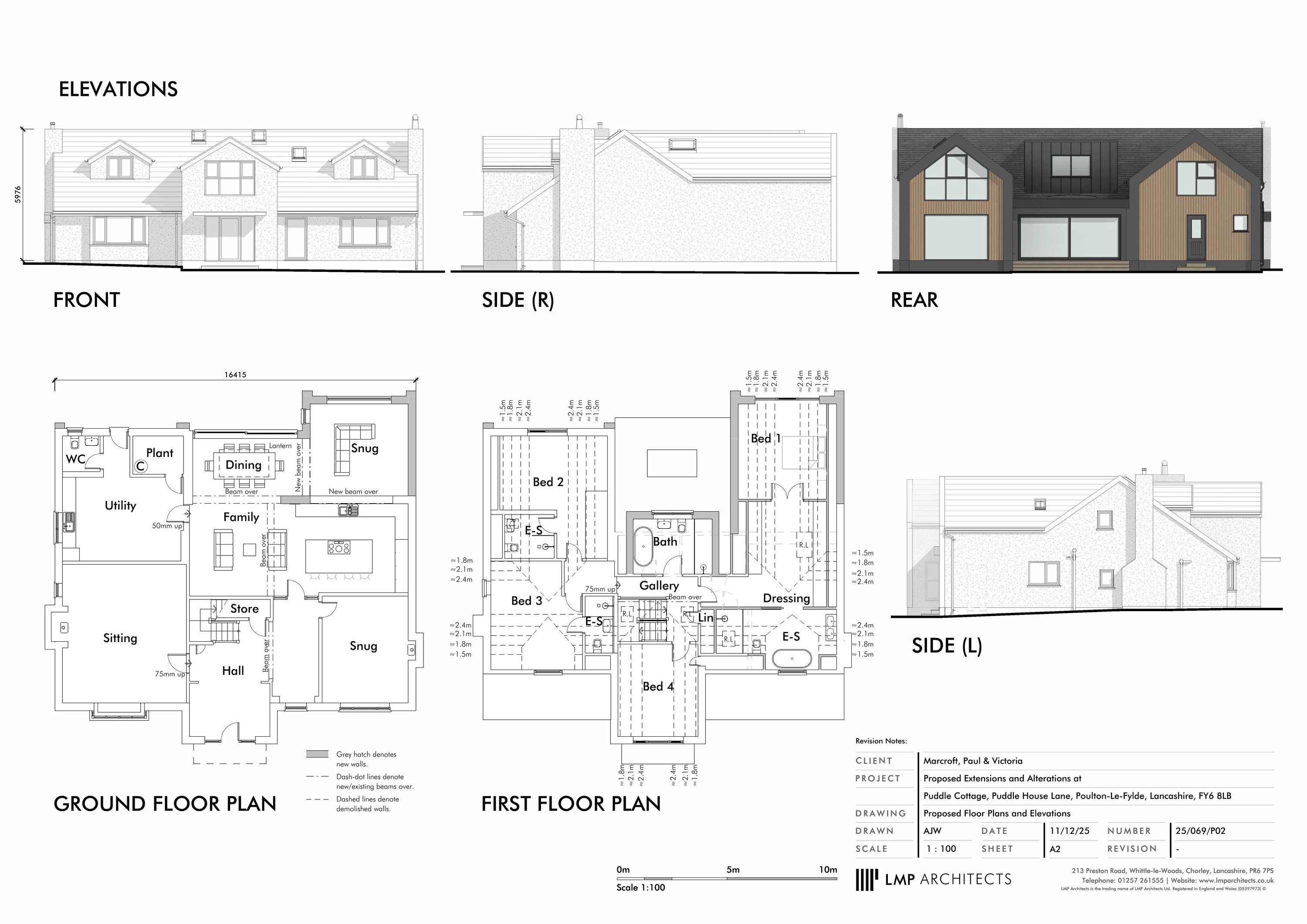 Existing elevations, existing floor plans