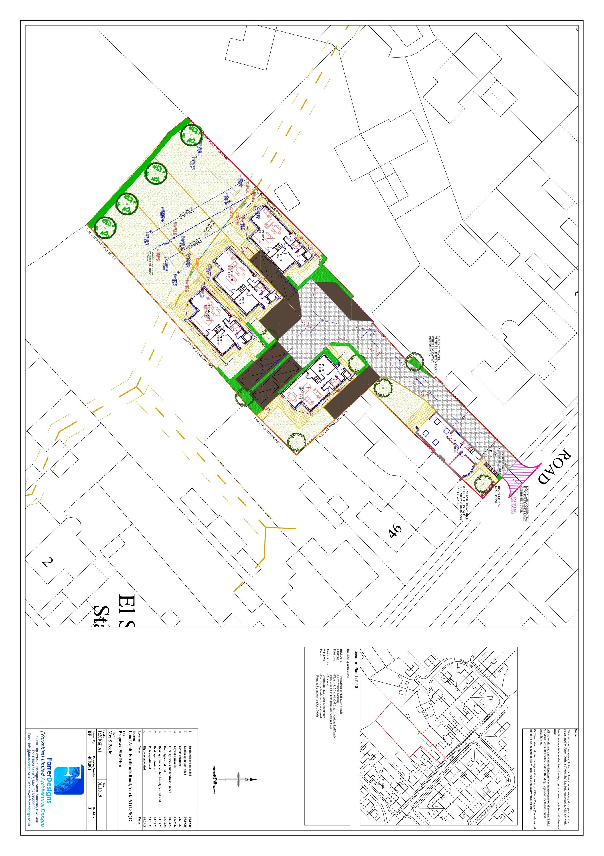 Construction of four detached houses with access, parking and landscaping.