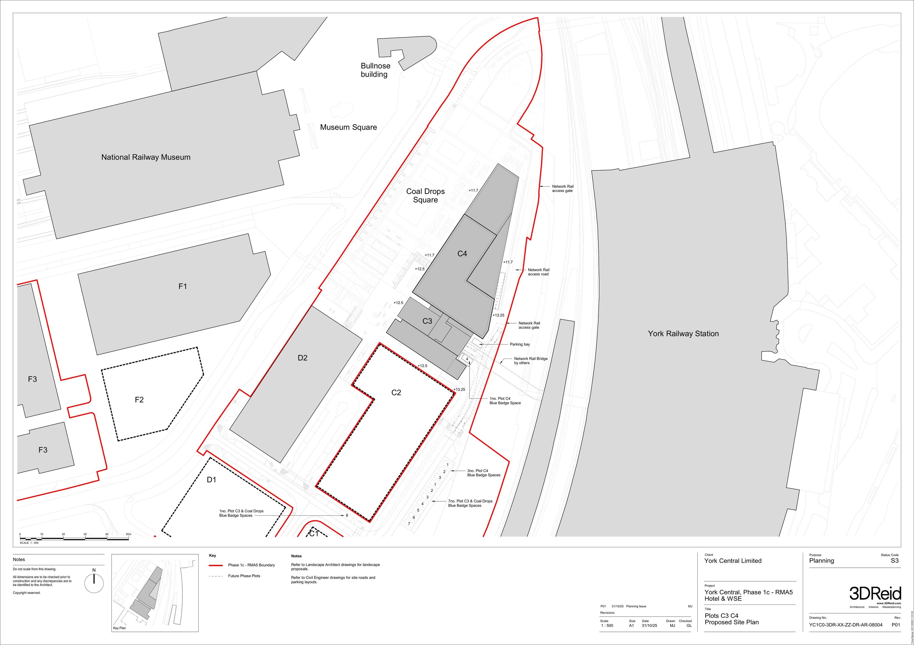 Reserved matters application for layout, scale, appearance, landscaping and access for erection of hotel with ground floor retail/leisure units (use class E) on Plot C4; new Western Station Entrance building, cycle hub and 1063 sq m (GEA) retail/leisure units (use class E) and 345 sq m (GEA) office use (use class E(g)(i and ii)) on Plot C3; 1no. office building (use class E c (i, ii and iii) and/or E g (i and ii) and 555 sq m (GEA) retail/leisure units (use class E) on Plot D; 129 dwellings and 357 sq m (GEA) retail/leisure units (use class E) on Plot E; 502 dwellings and 3003 sq m (GEA) retail/leisure units (use class E) on Plots F3 and F4; 368 dwellings and 1no. retail/leisure unit 433 sq m (GEA) (use class E (a) and/or (b)) on Plots K and L; new central park, public realm including public square at the former Coal Drops, with associated demolition and infrastructure pursuant to outline planning permission 18/01884/OUTM